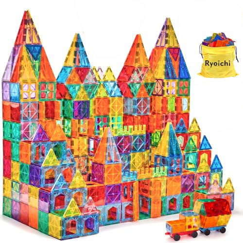 Ryoichi 138PCS Magnetic Building Tiles Set with 2 Cars. STEM Educational Construction Blocks & Montessori Learning Toys for Kids Ages 3-9+ Years