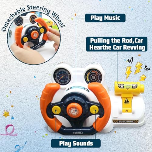 Fisca 2-in-1 Race Car Tracks PlaySet for Kids. Toy Car Ramp Track and Lifting Parking Lot. Dual Mode Toddler Car Track Toy Playset with 6 Cars. Automatic Rotary Elevator. Steering Wheel Music Driving