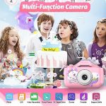 Goopow Kids Selfie Camera Toys for Girls Age 3-9. Digital Video Camera Toy with Protective Cover.Christmas Birthday Festival Gifts for 3-9 Year Old Girls Boys- 32GB SD Card Included (DC-H21-PINK)
