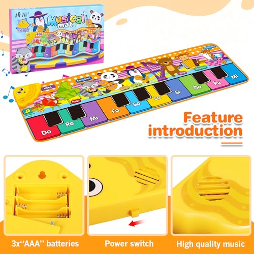 - Portable Music Mat:The music mat size is 43 x14 In.Foldable to 14.4×1.5 In.Powered by 3 AAA batteries (not included)Whether you are at home or on the go. you can easily use it. Will not be easily damaged by falling. suitable for children over 1 years.