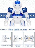 - Remote Control and Hand Gesture Control:This gesture sensing robot not only can be controlled by infrared controller. but also can turn left .turn right. slide backward. and slide forward according to how your hand gesture commands; Multi function includes auto display and obstacles avoidance as well;The toy robot’s eyes light up with bright blue illuminating LED when it moves;