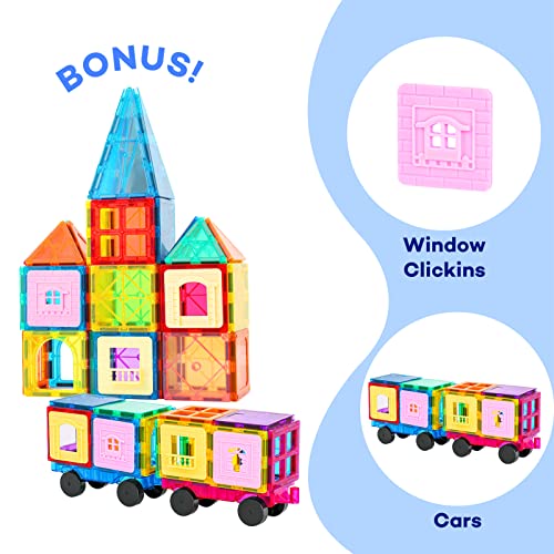 Magnetic Tiles 100PCS with 2 Cars. STEM Educational Building Blocks for Kids Ages 3-9. Magnet Construction Toys Gift for Toddlers