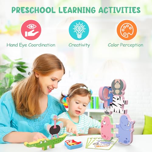 - 🐊【Animals Toys for Toddlers】Zeoddler Wooden Stacking Blocks are the PERFECT CHOICE for you and your toddlers as it is made from natural wood. printed with well designed. This montessori toys is suitable for toddlers and represents the perfect activity to learn through play!