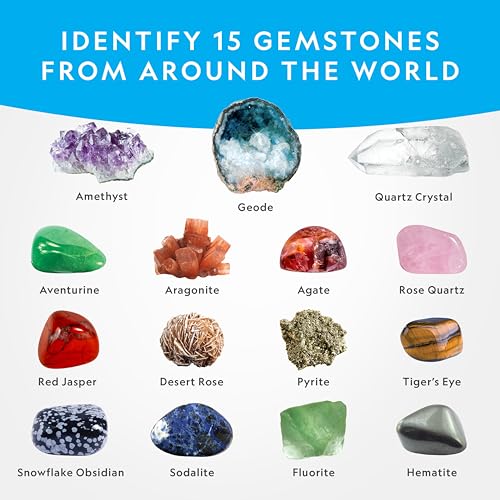 - FIND 15 AMAZING GEMSTONES – Including pyrite. amethyst. tiger’s eye. fluorite. quartz. obsidian. aventurine. and more. Unlike other kids toys. the Mega Gemstone Dig Kit seamlessly blends educational value with fun!