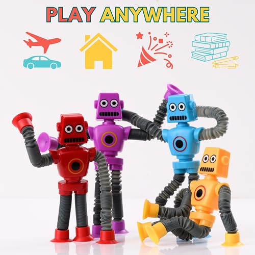 - ✈️ UNIQUE TRAVEL & ROAD TRIP TOYS FOR ALL AGES – Robot figurines make top notch road trip essentials for toddlers & children of all ages 3 4 5 6 7 8 9 10 11 12 13 14 year old; The kids will love playing with these cool telescopic robots on an airplane flight or in the back car seat; Pop Tubes sensory toy are traveling with toddlers must haves;