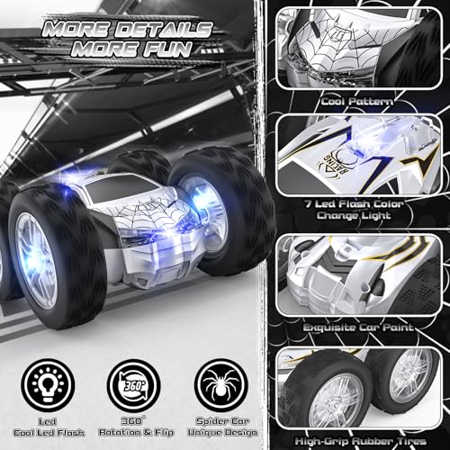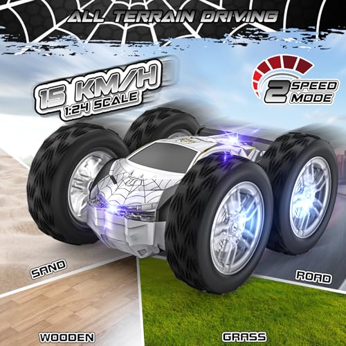 Remote Control Car for Kids. RC Stunt Cars Toys for Boys Ages 4-7 with Cool Double-Sided Pattern and LED Flash. 1:24 Vehicle Toy Car Hobby Racing Car Toys Gift for 3 4 5 6 7 8 9 Year Old Boys