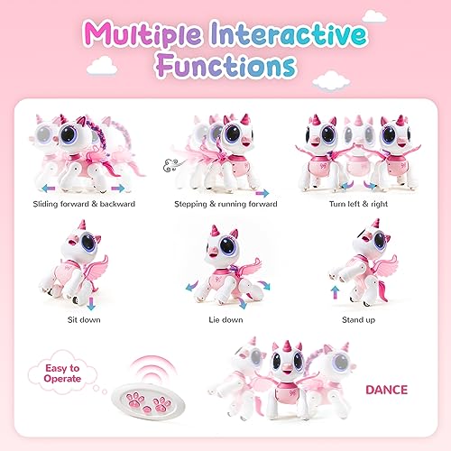 SGILE Unicorn Toy for Girls Robot Pet for Kids Age 3 4 5 6 7 8 Years with Music Dance Walk and Interactive Gesture Sense Program Treats. Preschool STEM Learning Remote Control Toy for Toddler Pink